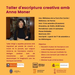 Entre 2021 i 2022, a la Biblioteca de Potries organitzarem un taller d’escriptura creativa amb l’autora valenciana Anna Moner. El fil conductor del taller van ser algunes obres d’art que els participants prengueren per a inspirar-se o donar peu a un relat curt. En cada sessió Anna, revisava, aconsellava i explicava com millorar aquests escrits. A continuació podeu llegir alguns dels relats, de gran qualitat, que els escriptors i les escriptores han volgut compartir.